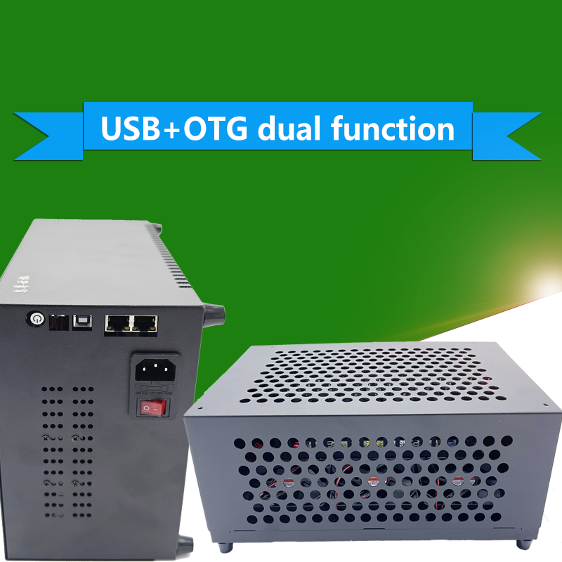 This docking station features 20 phone positions, supporting the entire device or its mainboard. The circuit board supports USB data transmission and LAN access. It is equipped with 24 5V power supply lines with 2P ports. There are 3 super-strong cooling fans. The docking station has a 200W 40A power supply with 110V-220V input.